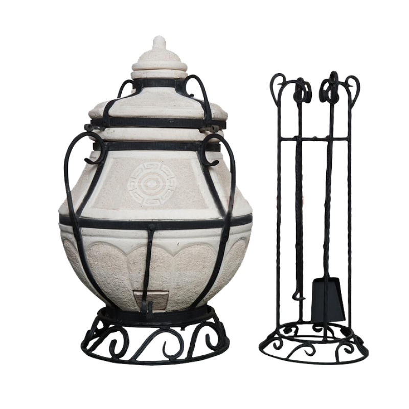 Удачная модель тандыра от компании Амфора, где все уже в комплекте и подставка под тандыр, и подставка под крышку тандыра. Оптимальный вес для большого тандыра позволяет рекомендовать данный комплект для компаний 8-12 человек.
