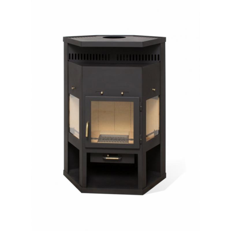 Мощная пристенная печь с большим панорамным обзором Большая плоская дверка по центру и два боковых стекла дают максимально-возможный обзор горения в большой топке. Идеально подходит для обогрева помещения площадью 55-110 м2. По заказу может поставляться в сером или черном цвете. Максимальный размер поленьев до 70 см. Подсоединение к дымоходу сверху или сзади.