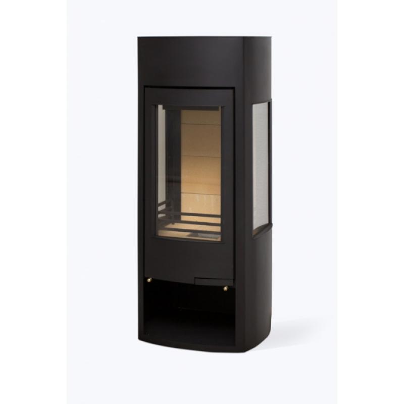 Пристенная высокая дизайнерская печь с панорамным обзором. Оборудована большой остекленной дверкой выполненной в одной плоскости с корпусом печи и с двумя боковыми стеклами. Дверка высотой 600 мм и боковые стенки выполнены с небольшим радиальным изгибом. Ручка открывания утоплена внутрь дверки. Идеально подходит для установки в клубном помещении – в бильярдной, в баре, в музыкальной комнате, площадью 40-80 м2. Оборудована системой «чистое стекло». Подсоединение к дымоходу сверху или сзади Размер поленьев до 50 см (верт.)