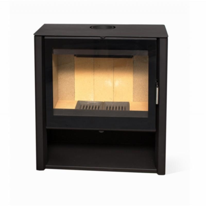Пристенная печь с оригинальным и лаконичным дизайном. Большая плоская топочная дверка. Идеально подходит для обогрева помещения, выполненного в современной стилистике площадью 45-90 м2. Размер поленьев 30 – 60 см.