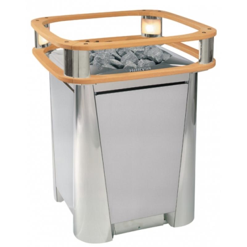 Электрокаменка Harvia Elegance отличается элегантным, притягивающим взгляд дизайном. Такой стильный дизайн позволяет установить каменку в центре сауны. Эта каменка лучше всего подходит для коммерческих и больших семейных саун. Внешний облик каменки Elegance можно дополнить красивым деревянным поручнем, который изготовлен из ольхи. Его красноватый оттенок хорошо сочетается с каменкой, выполненной из нержавеющей стали. Этот поручень может оснащаться галогенными лампами, которые дают достаточно света для освещения сауны и придают особый шарм атмосфере сауны.