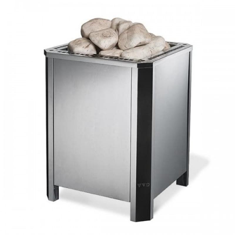Надёжные нержавеющие ТЭНовые элементы обеспечили её неприхотливость в эксплуатации и гарантированную работу в режиме парообразования, а солидная масса печи - стабильный температурный режим в парном помещении, низкую цикличность работы эл. оборудования и его устойчивую работу.