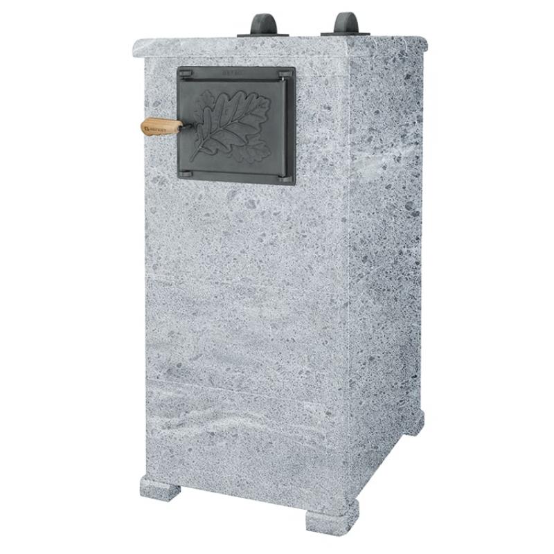 Облицовка представляет собой сборную конструкцию, состоящую из каменных плит толщиной от 30 до 60мм. Для крепления плит используются металлические планки вставляемые в пазы смежных плит. Внутренняя поверхность всех плит находится на расстоянии от 10 до 50мм от корпуса топки образуя пазухи, позволяющие воздуху циркулировать между облицовкой и топкой.