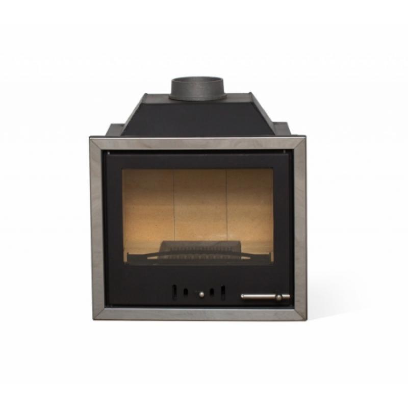 - Компактная каминная топка привлекательного современного дизайна с декоративными элементами из нержавеющей стали.