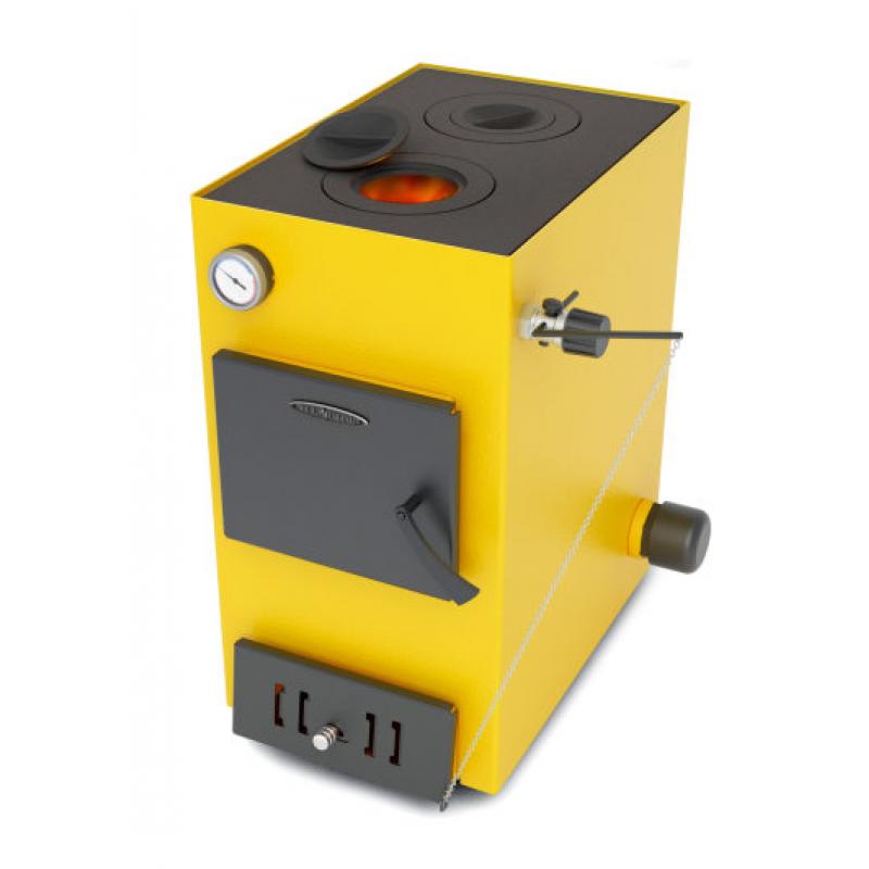 Эта модификация водогрейного котла «Ташкент 16» отличается от базовой версии тем, что имеет встроенный блок ТЭН максимальной суммарной мощностью 6 кВт и чугунную варочную поверхность с двумя конфорками. Блок ТЭН и АРТ входят в комплект поставки.