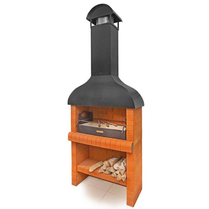 Конструкция мангала даёт равномерное горение углей. Жаростойкий кирпич накапливает тепло, регулируется высота рамки под шампура